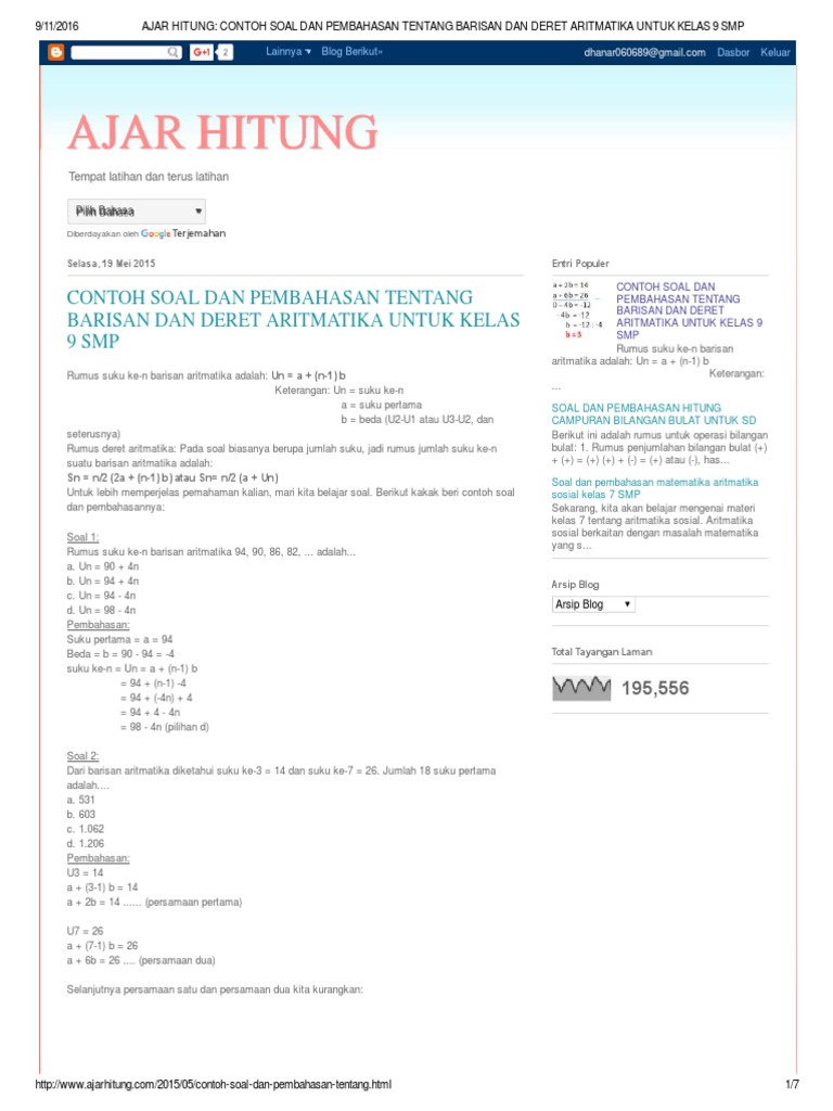Contoh Soal Deret Aritmatika Kelas 8 Smp - Nada Blog