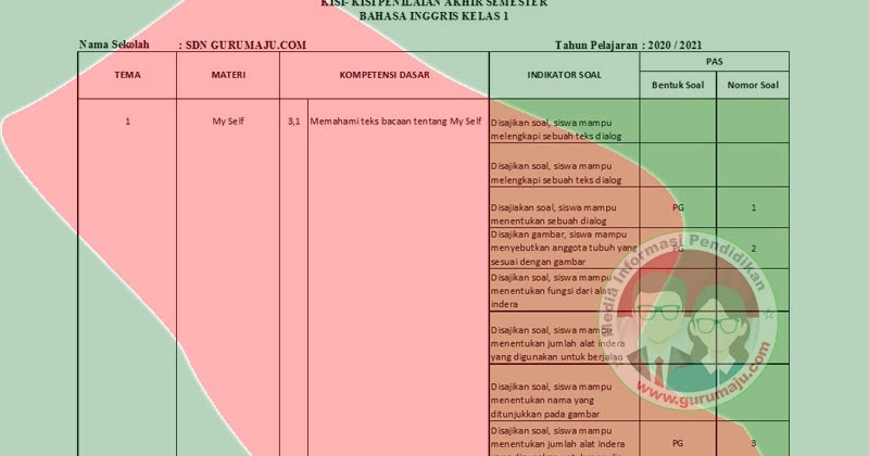 KISI-KISI SOAL UTS/PTS BAHASA INGGRIS KELAS 1 SD SEMESTER 1 K13 …
