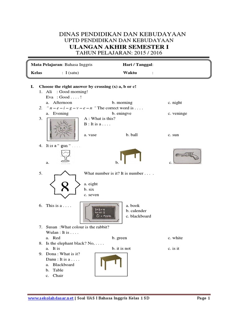 Contoh Soal Ujian Tengah Semester Kelas 1 Sd Bahasa Inggris | Ilmu …