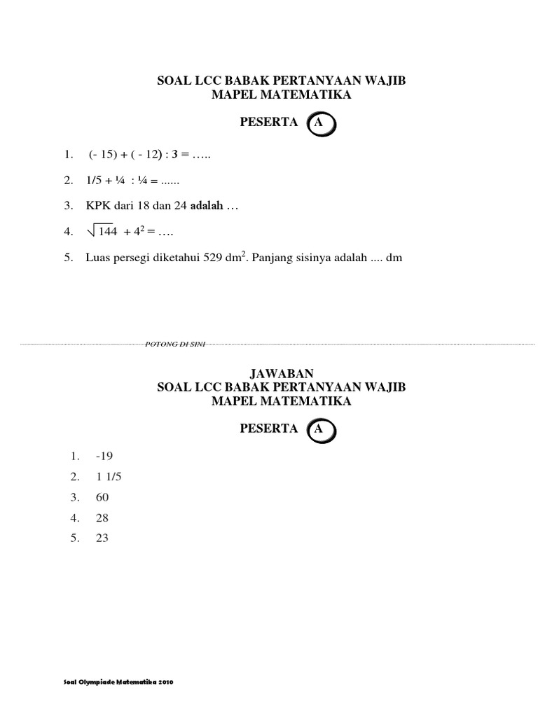 Soal Cerdas Cermat Matematika Sd Dan Jawabannya – Peranti Guru