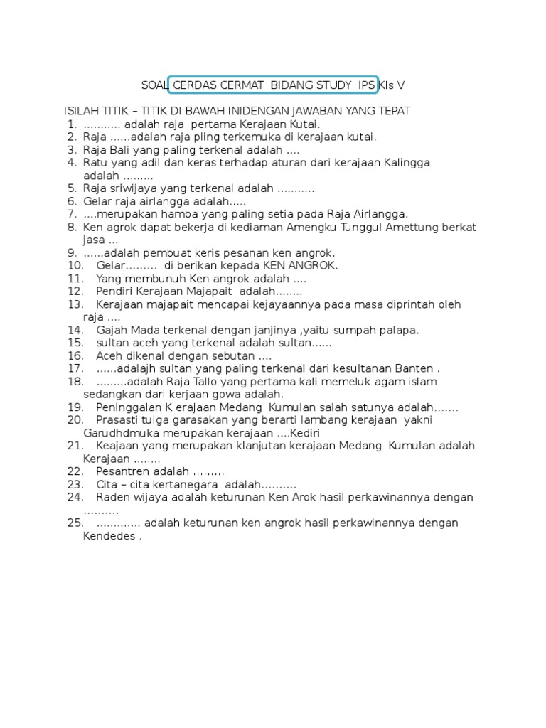 contoh soal cerdas cermat sd – CAMPURAN ID