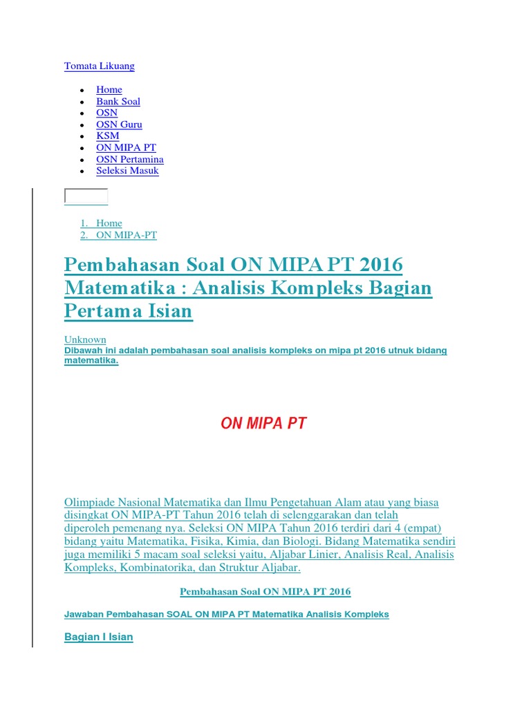 Pembahasan Soal ON-MIPA PT 2016 : Analisis Kompleks …