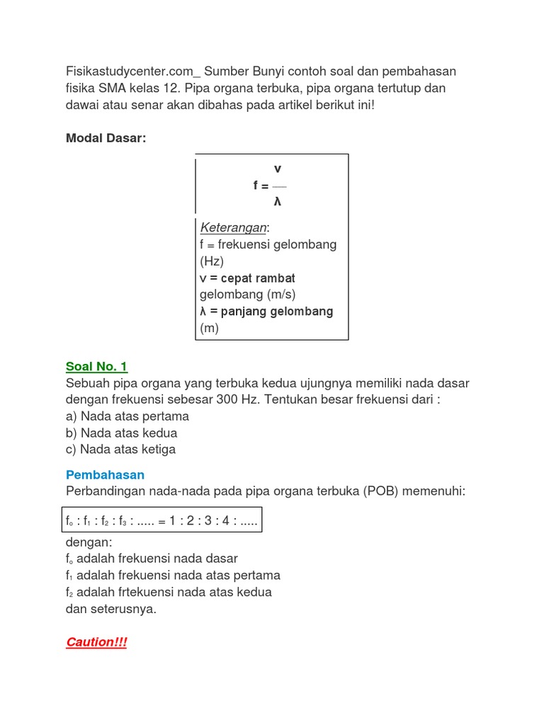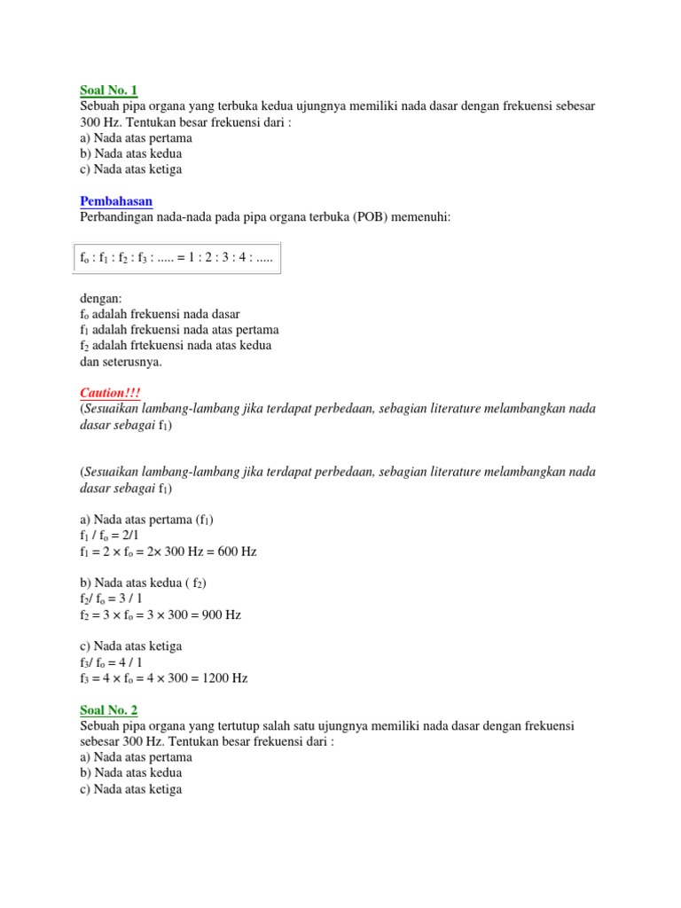 Soal Dan Pembahasan Bunyi Pipa Organa