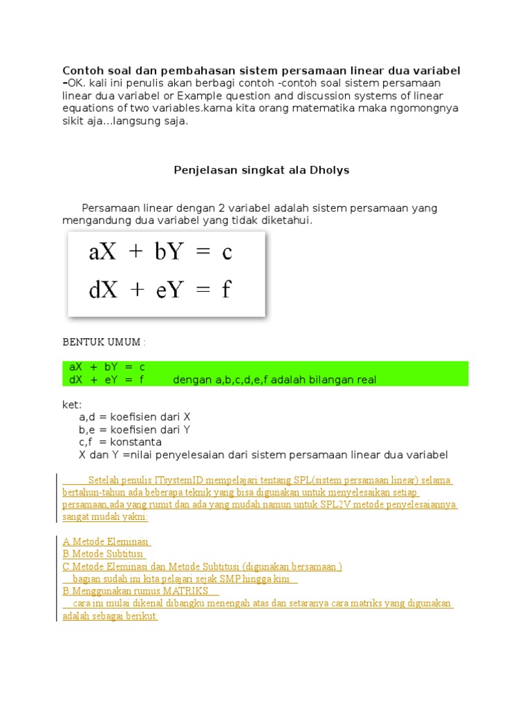 Kumpulan Soal Dan Pembahasan Sistem Persamaan Linier Dua …