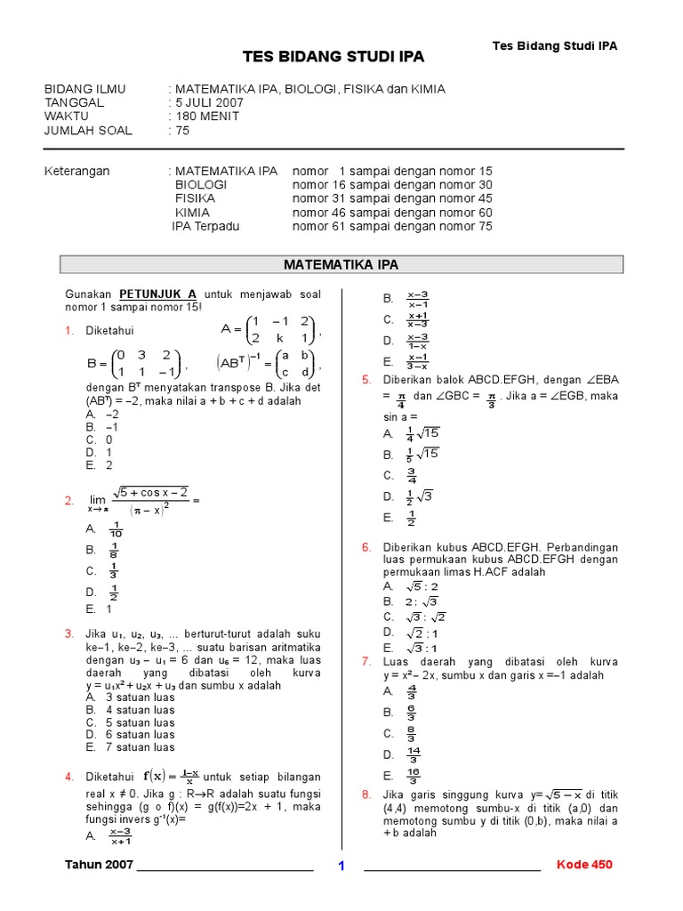 Latihan Soal SBMPTN Matematika IPA dan Pembahasannya - Matematika SMA / SMK - Detail Catatan | MejaKita