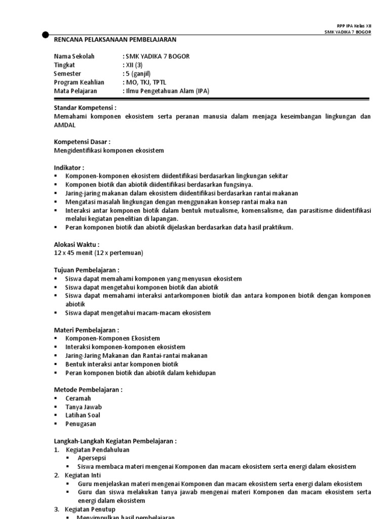 RPP IPA SMK Kelas XII