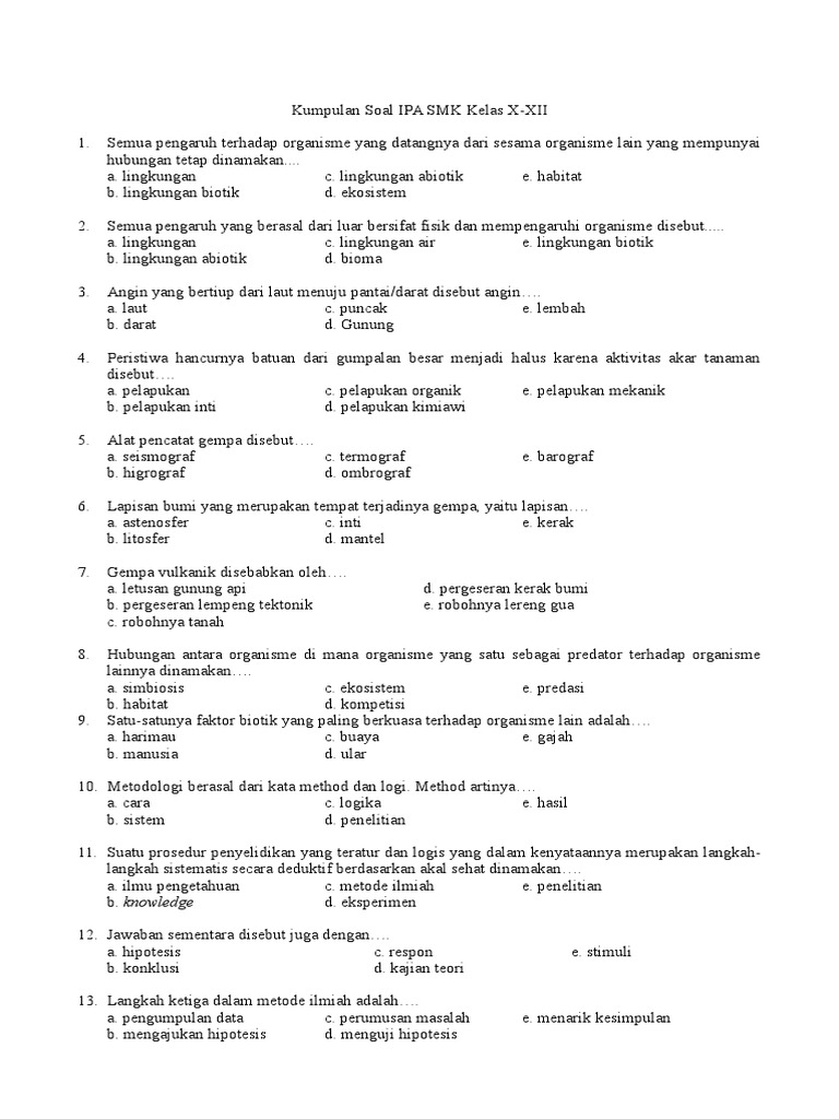 Kumpulan Soal Ipa Smk Kelas X-xii