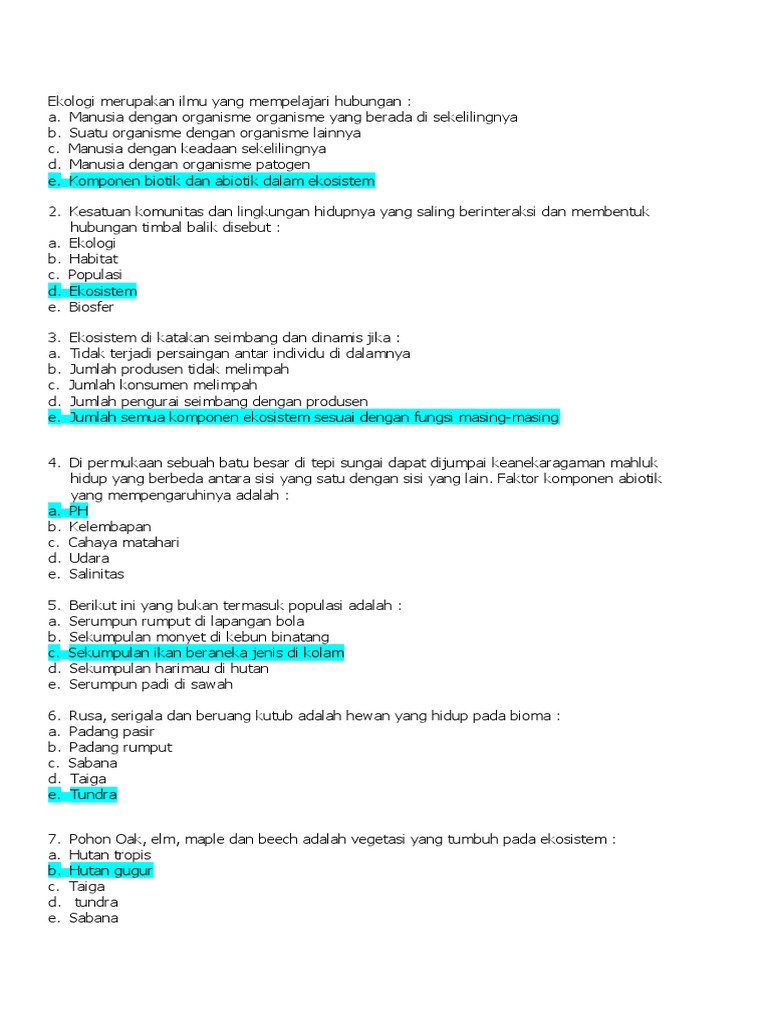 Soal Biologi dan Jawabannya Bab Ekosistem ~ Soal PG+Essay (Biologi …