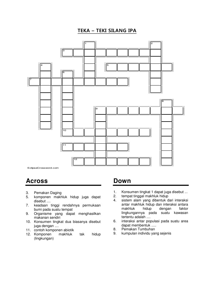 Soal Teka-Teki Silang (TTS) IPA Kelas 4 SD Bab 5 Ekosistem …