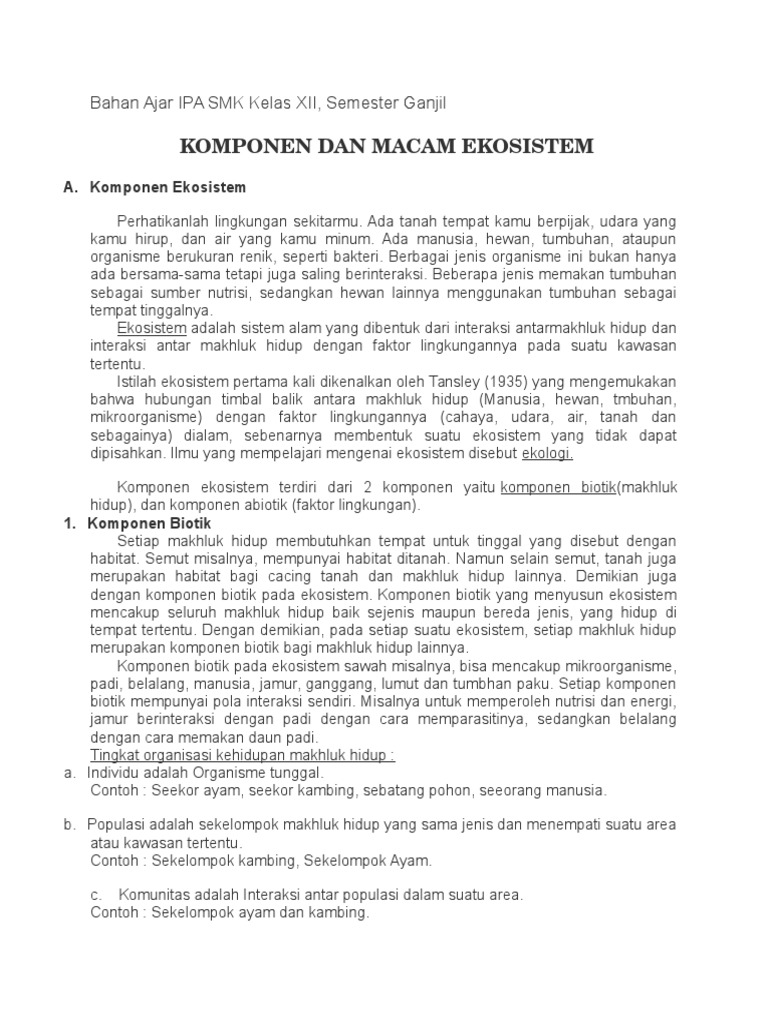 Soal Ipa Kelas Xii Smk Tentang Ekosistem