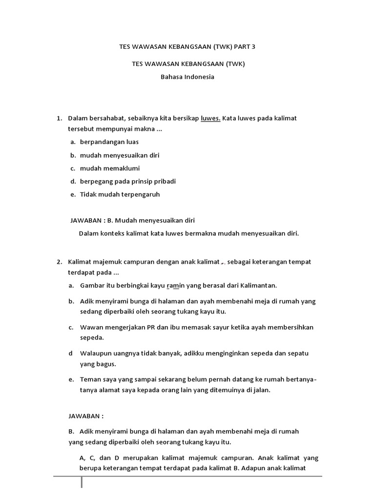 Soal Kalimat Majemuk Dan Jawaban