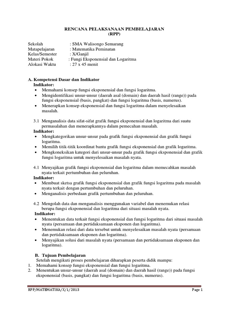 rpp sifat-sifat logaritma kurikulum 2013 ( RPP eksponen dan logaritma…