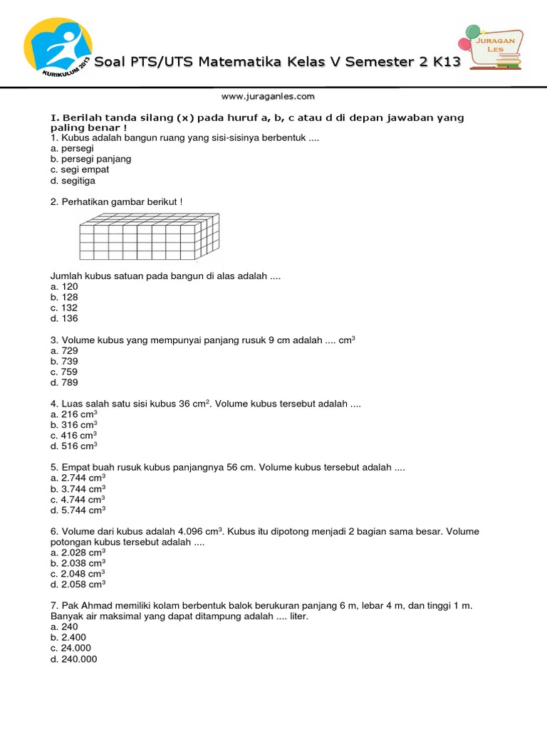 Soal Ulangan Harian Matematika Kelas 5 Semester 2 Kurikulum 2013 …