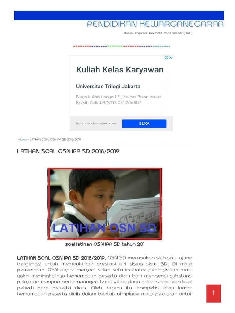 Soal & Pembahasan OSK OSP OSN IPA SD Tahun 2019 - Tomatalikuang …