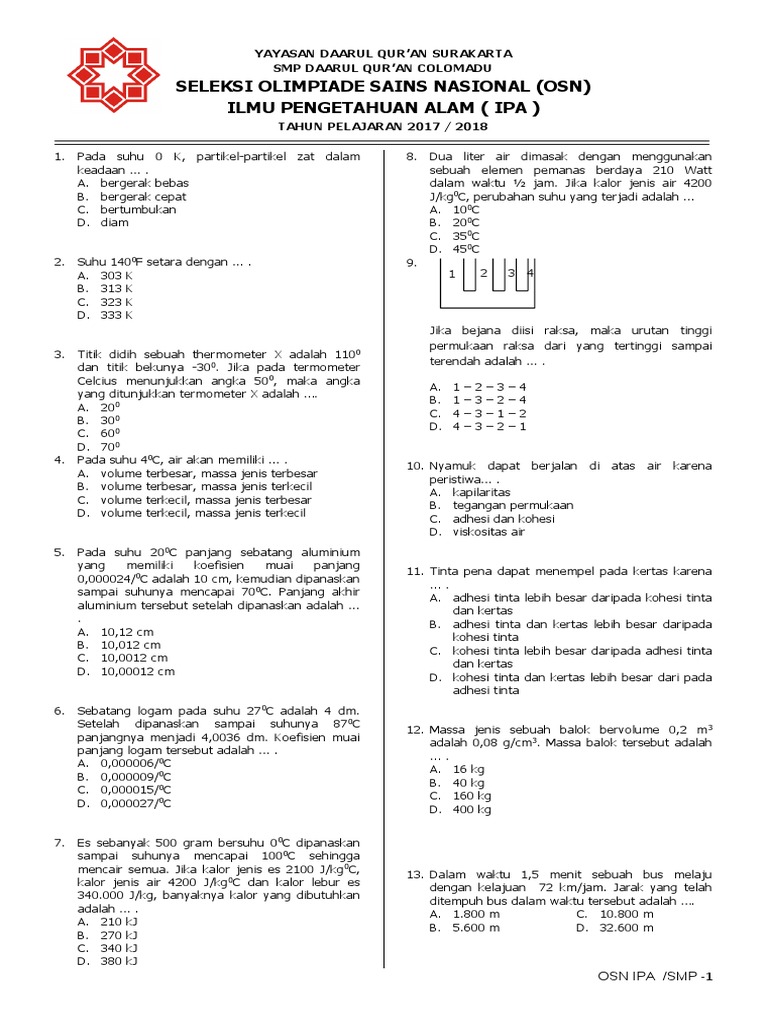 Contoh Soal Osn Ipa Smp 2019 - Bagikan Contoh