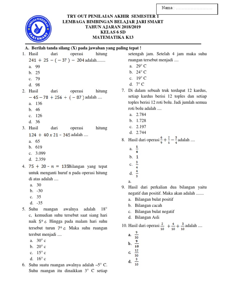 Soal Uas Matematika Kelas 6 Semester 1 2018 – IlmuSosial.id