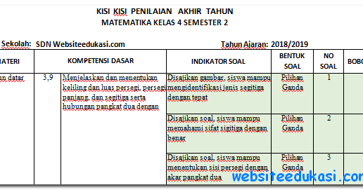 Kisi-Kisi PAT Matematika Kelas 4 K13 Tahun 2018/2019 - Portal Guru …