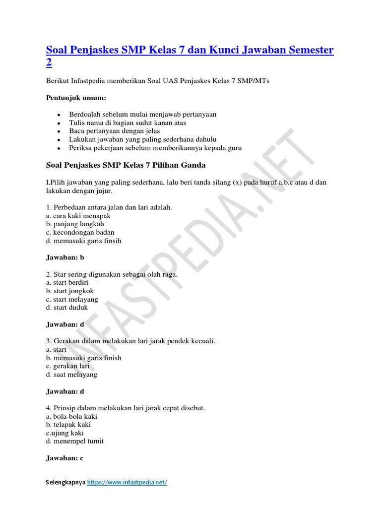 Soal Penjaskes Smp Kelas 7 Dan Kunci Jawaban Semester 2 …