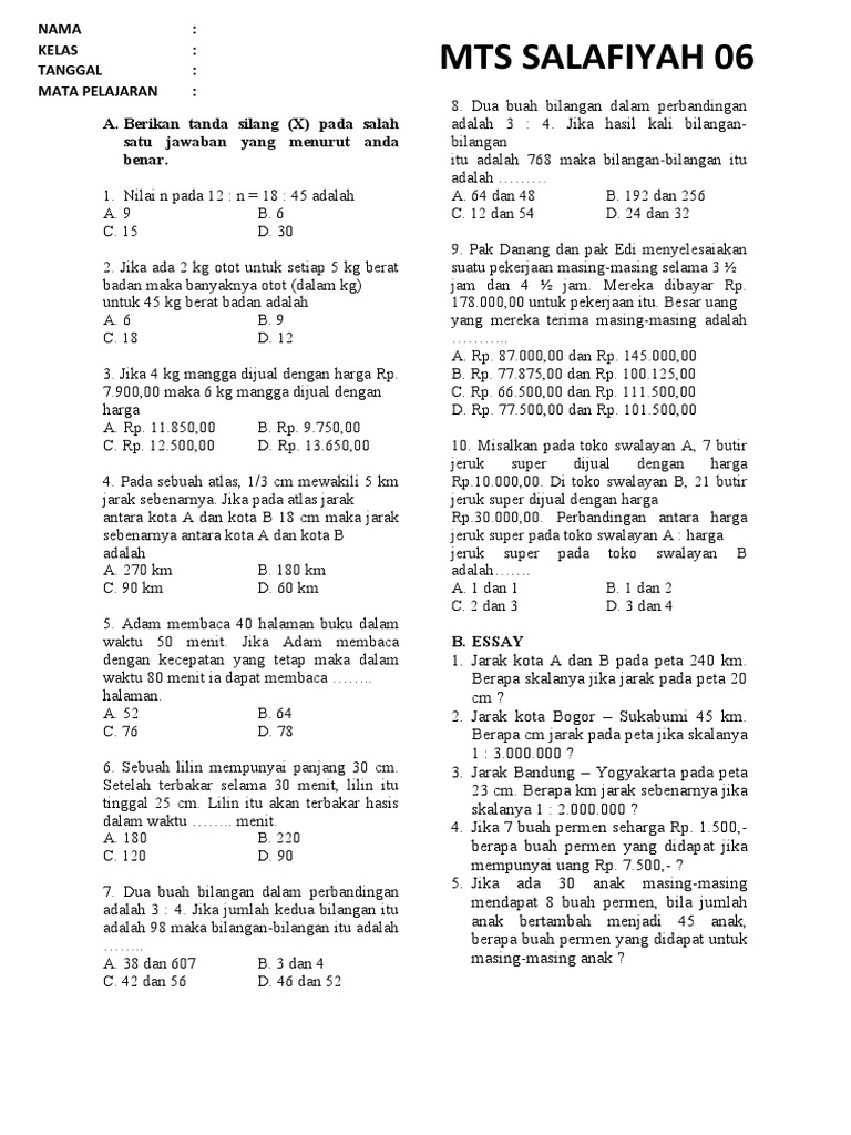 DOC) Contoh soal dan pembahasan jawaban Perbandingan dan Skala | Dini Sanjaya - Academia.edu