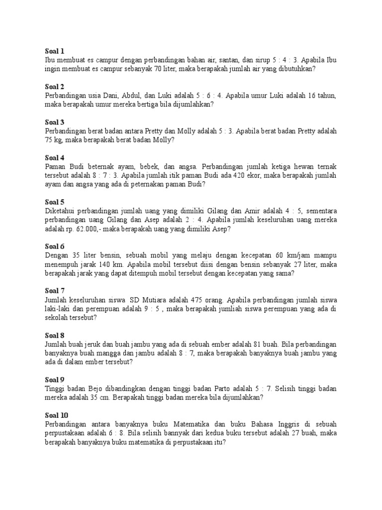 Soal Perbandingan Sd Kelas 5