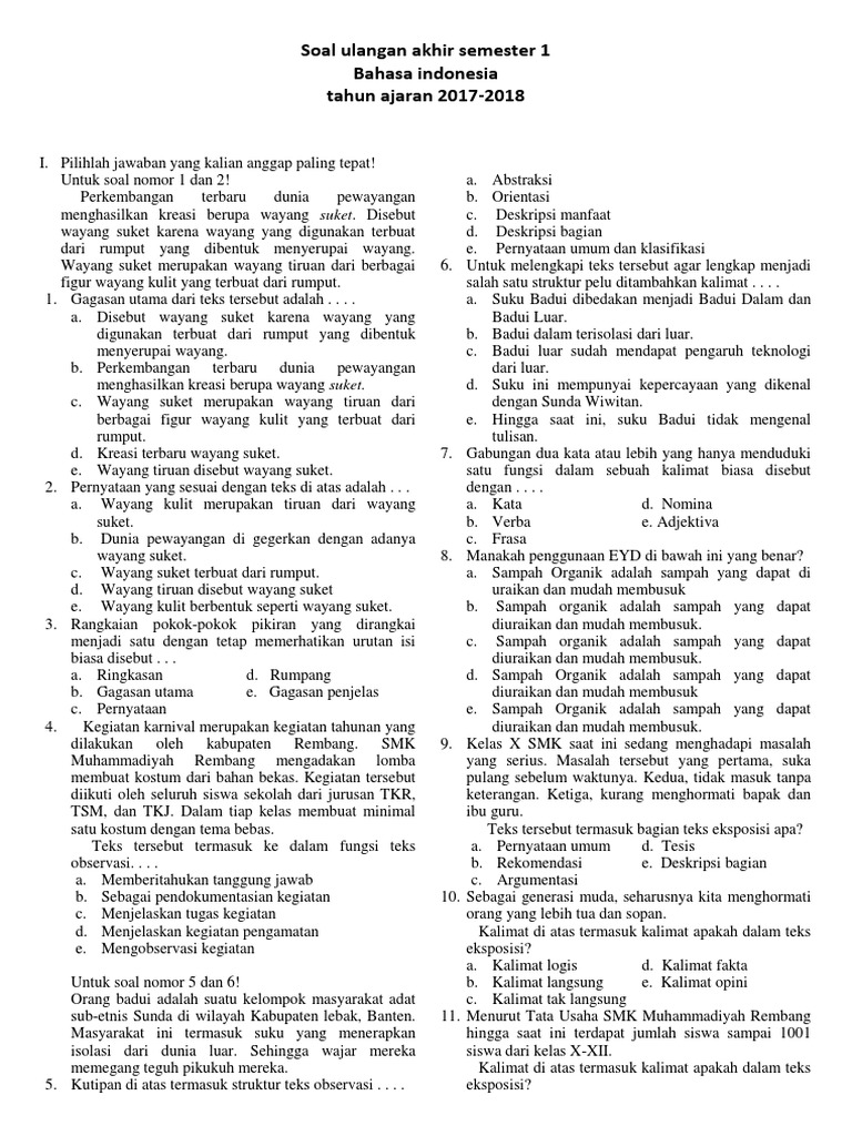 Soal Uas Basindo Kelas x Semester 1 (Ganjil) 2017-2018