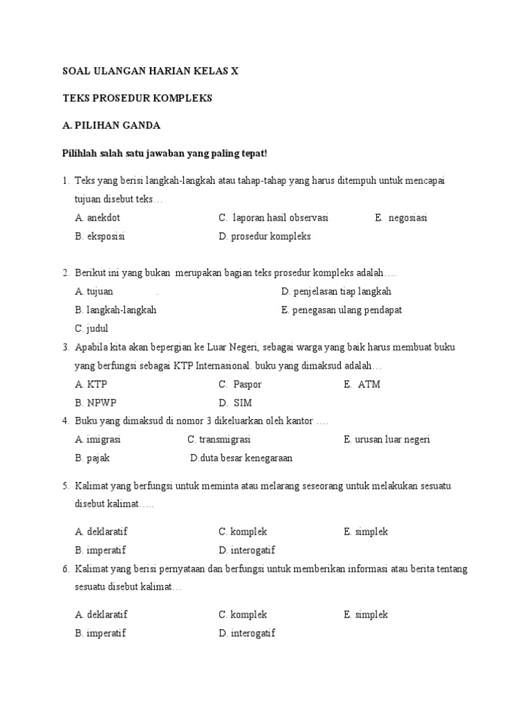 Contoh Soal Teks Prosedur Kompleks Pilihan Ganda Dan Jawabannya …