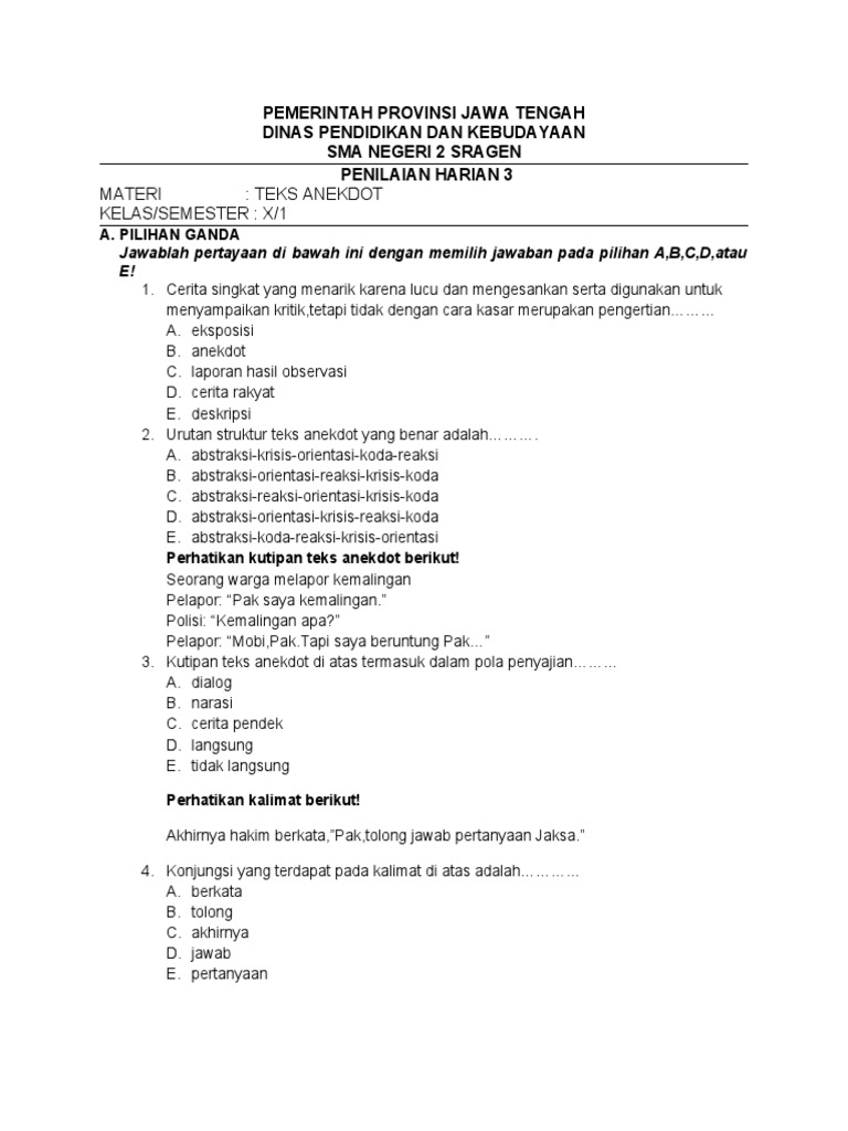 Contoh Soal Teks Anekdot Pilihan Ganda Dan Jawabannya - Berbagai …
