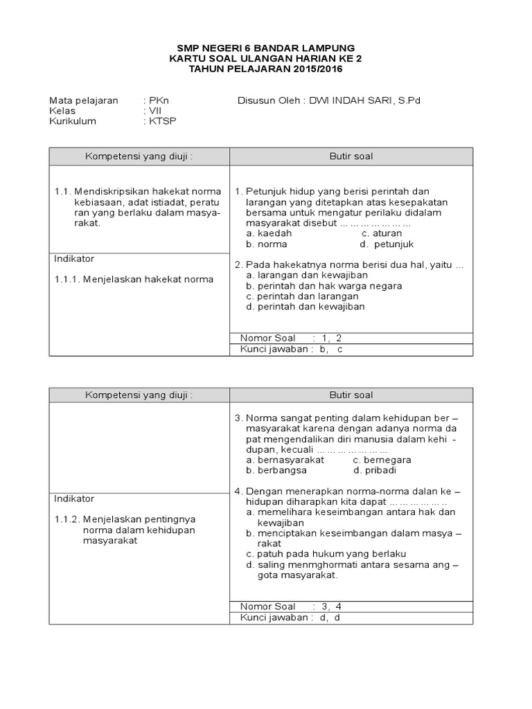 Contoh Soal Ulangan Pkn Kelas 8 Semester 2 - Dapatkan Contoh