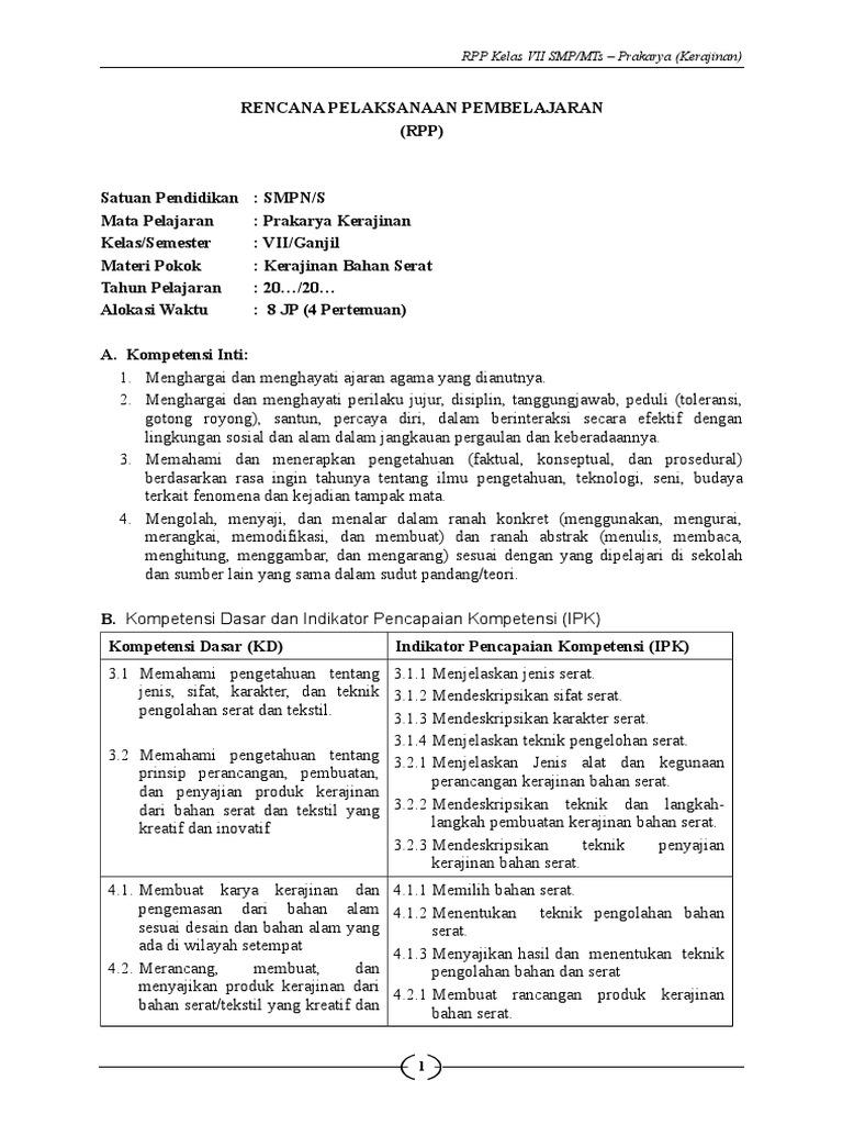 RPP Prakarya Kerajinan Smstr 1 Kls 7 für Android - APK herunterladen