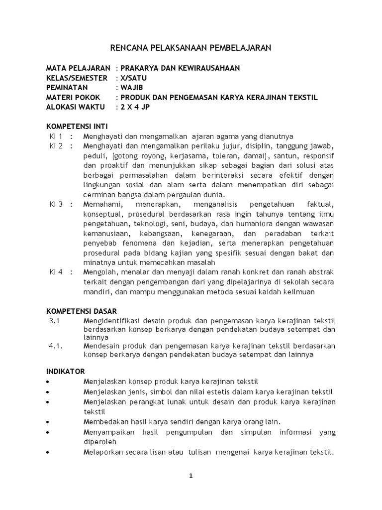 RPP Kerajinan (Produk Dan Pengemasan Karya Kerajinan Tekstil)