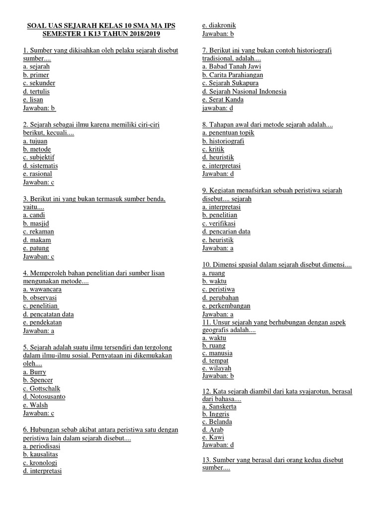 Soal Sejarah Kelas Xi Ips Semester 1 Beserta Jawaban - Seputar Sejarah