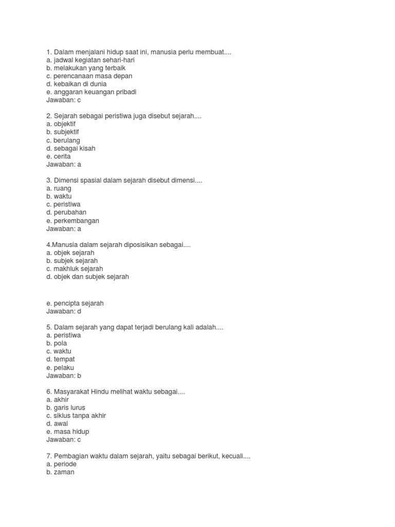 Contoh Soal Sejarah Kelas X Semester 1 Dan Kunci Jawaban - Berbagi …