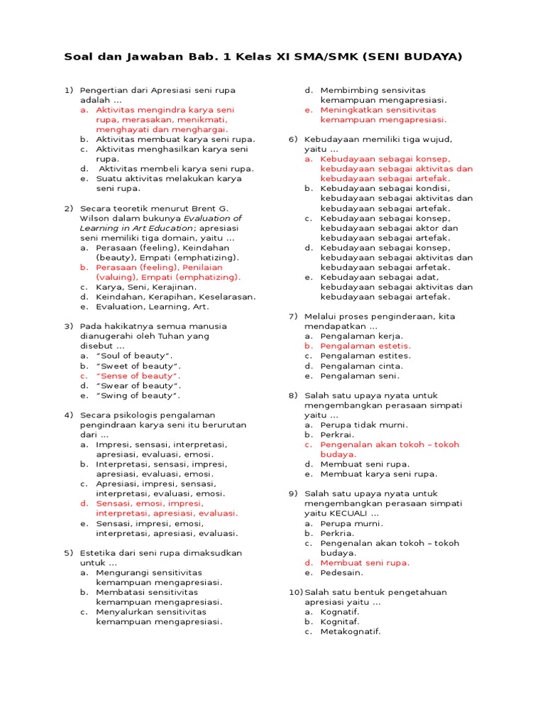 Soal Dan Jawaban Seni Budaya Sma Kelas Xi Semester 1 | My First JUGEM