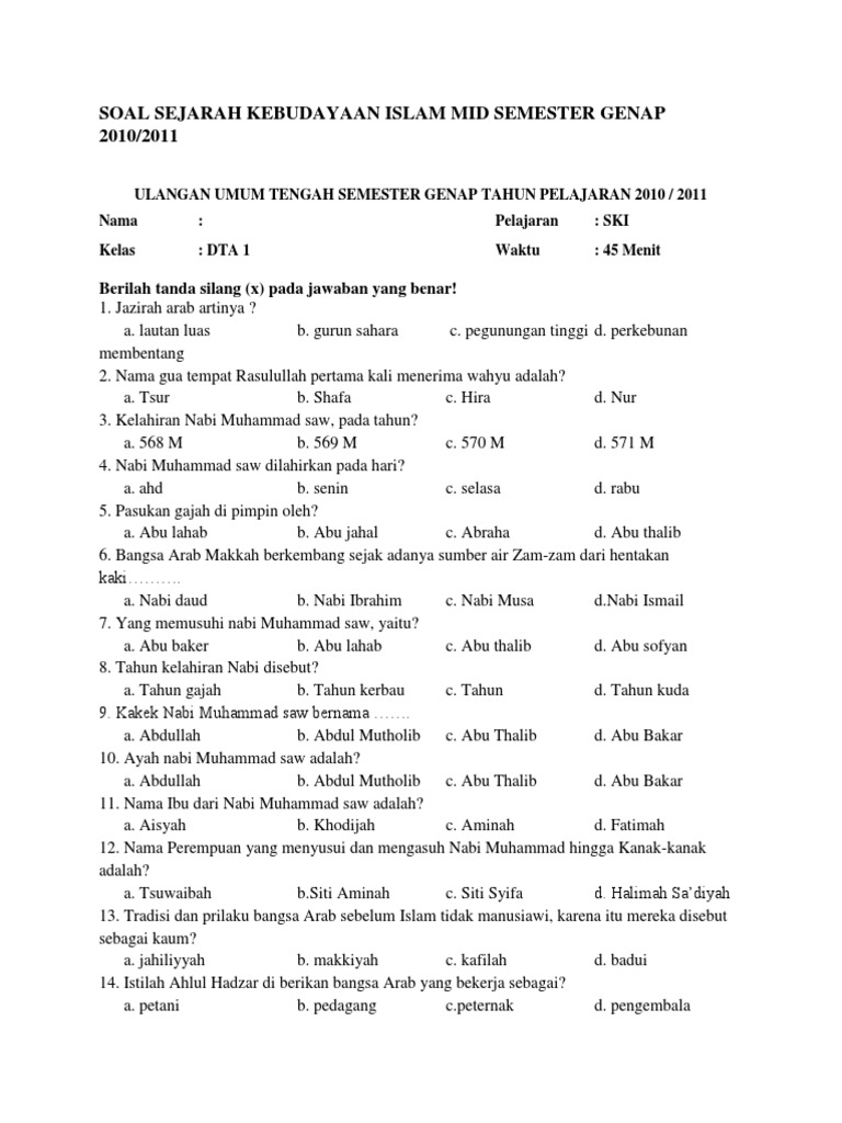 Soal Sejarah Kebudayaan Islam Mid Semester Genap 2010