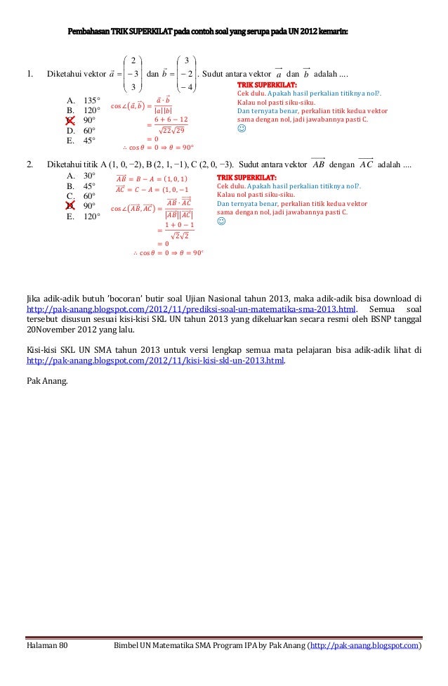 Inilah Soal Un Vektor Sudut