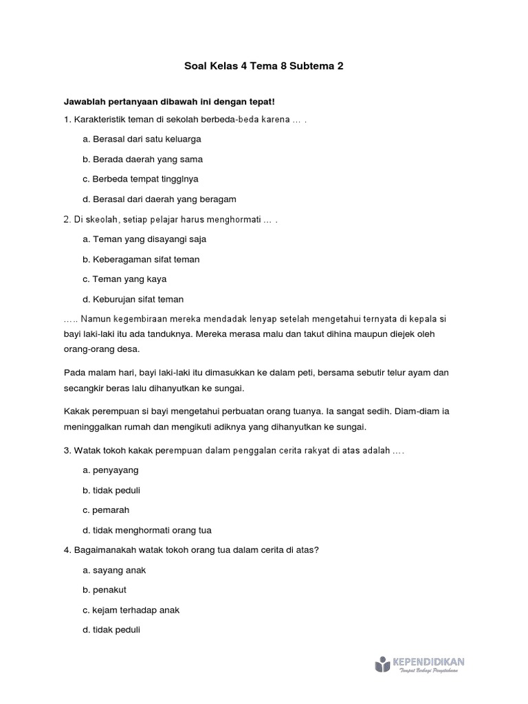 SOAL TEMATIK KELAS 4 TEMA 8 SUBTEMA 1 DAN JAWABAN - Kurikulum …