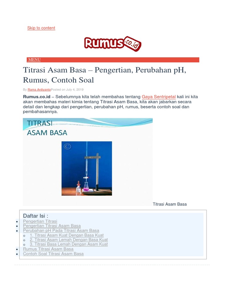 Contoh Soal Dan Pembahasan Titrasi Asam Basa - Bagikan Contoh