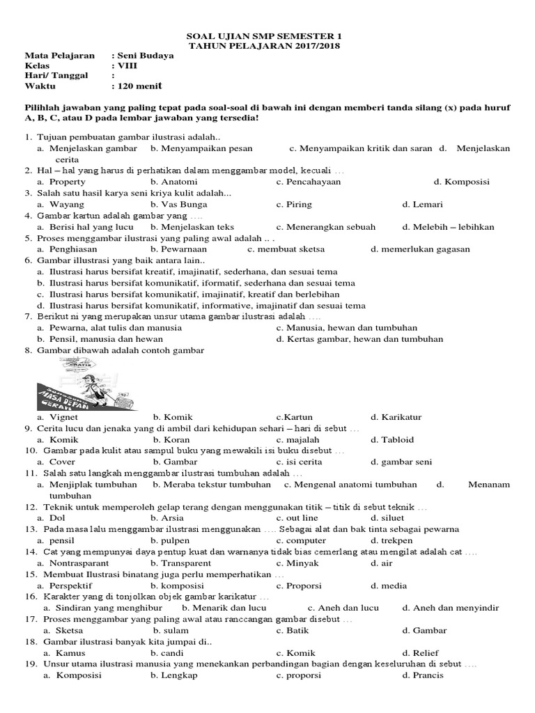Soal Uas Seni Budaya Kelas 8 Semester 1 Dan Kunci Jawaban Administrasi Sekolah Sd Mi Smp - Cute766
