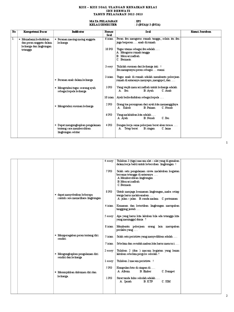 Kisi-kisi Soal Ukk Ips Kelas 2
