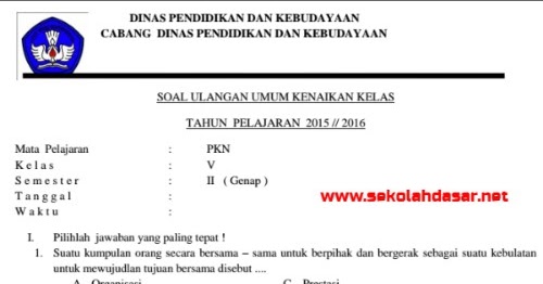 Soal Ulangan Kenaikan Kelas-UKK PKN Kelas 5 SD Tahun 2019 | SDN …