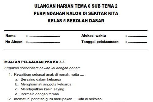 Contoh kisi dan soal uas 1 pkn kelas 5 sd