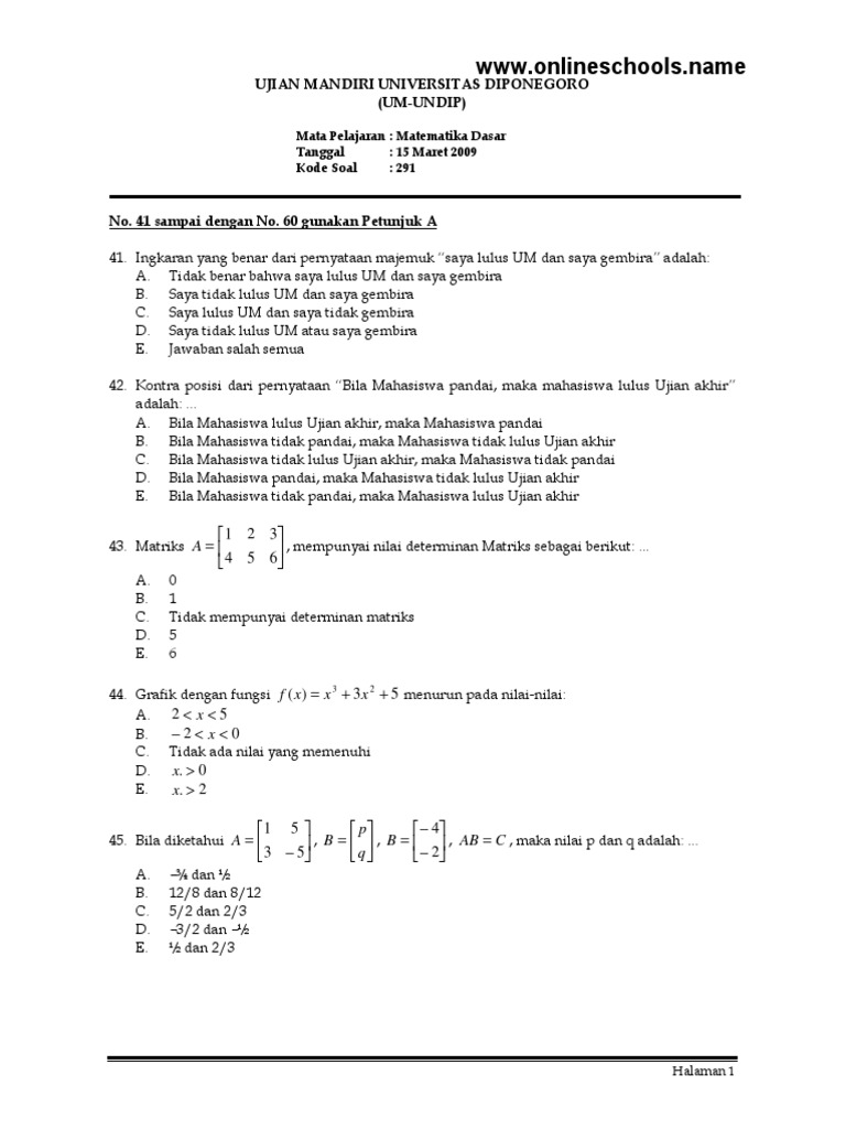 Download Soal UM UNDIP S1 (Ujian Mandiri Universitas Diponegoro …