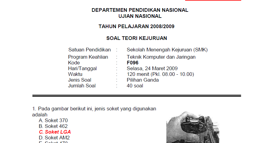 Contoh Soal Ujian Nasional Produktif Tkj - Ujian Nasional