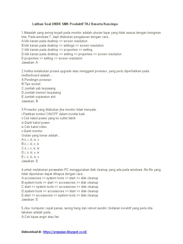 Download Soal Dan Kunci Jawaban Un Smk Tkj – IlmuSosial.id