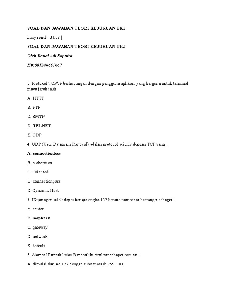 PDF) Soal dan Jawaban Teori Kejuruan TKJ (Teknik Komputer dan …