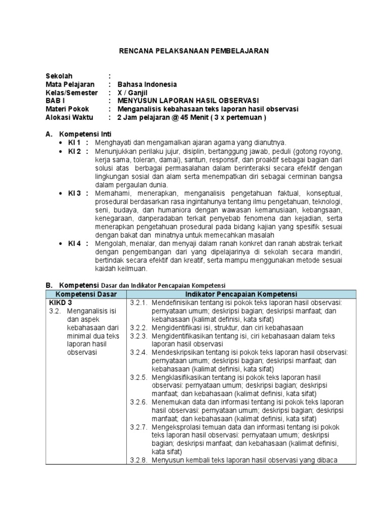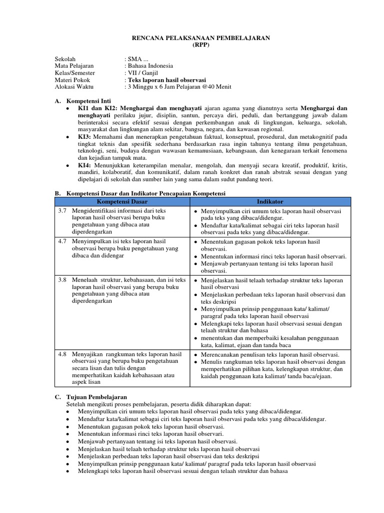 Contoh rpp laporan hasil observasi smp kelas 7