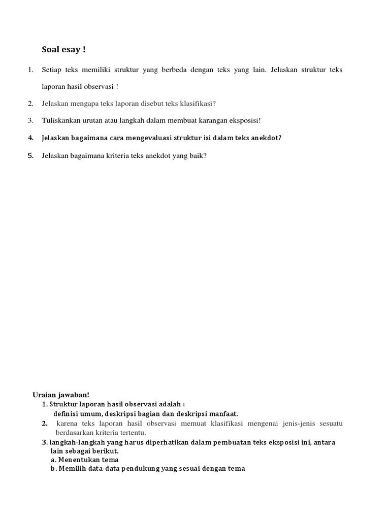 Contoh Soal Essay Teks Laporan Hasil Observasi Beserta Jawabannya | Kumpulan Soal pelajaran 3