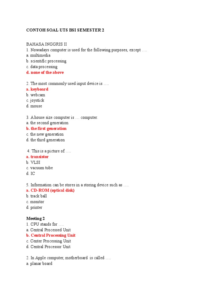 Soal Dan Jawaban Uts Bahasa Inggris Bsi Semester 1 - Peranti Guru