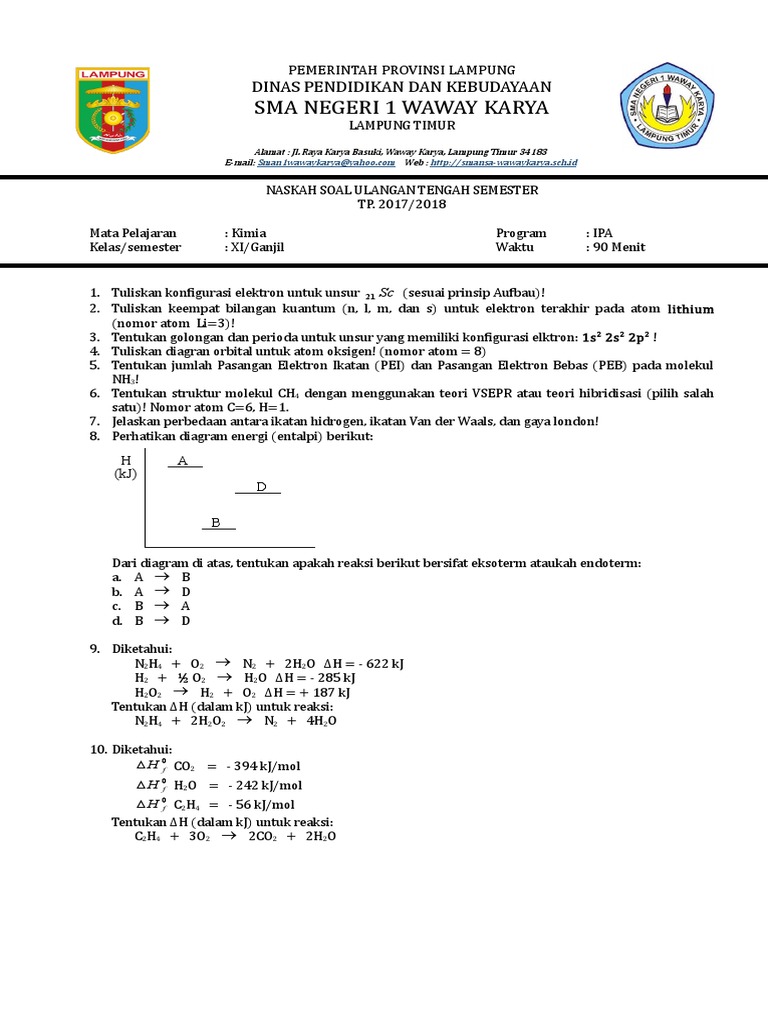 Soal Kimia Kelas X Sma Semester 1 Dan Jawaban Bilingual | Temp - Dave Hebert : powered by Doodlekit