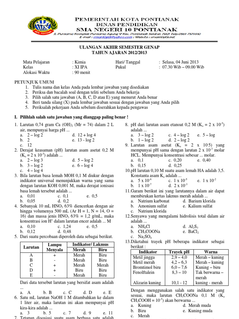 Download Soal Kimia Kelas 11 Semester 2 Kurikulum 2013 - Mariyadi.com